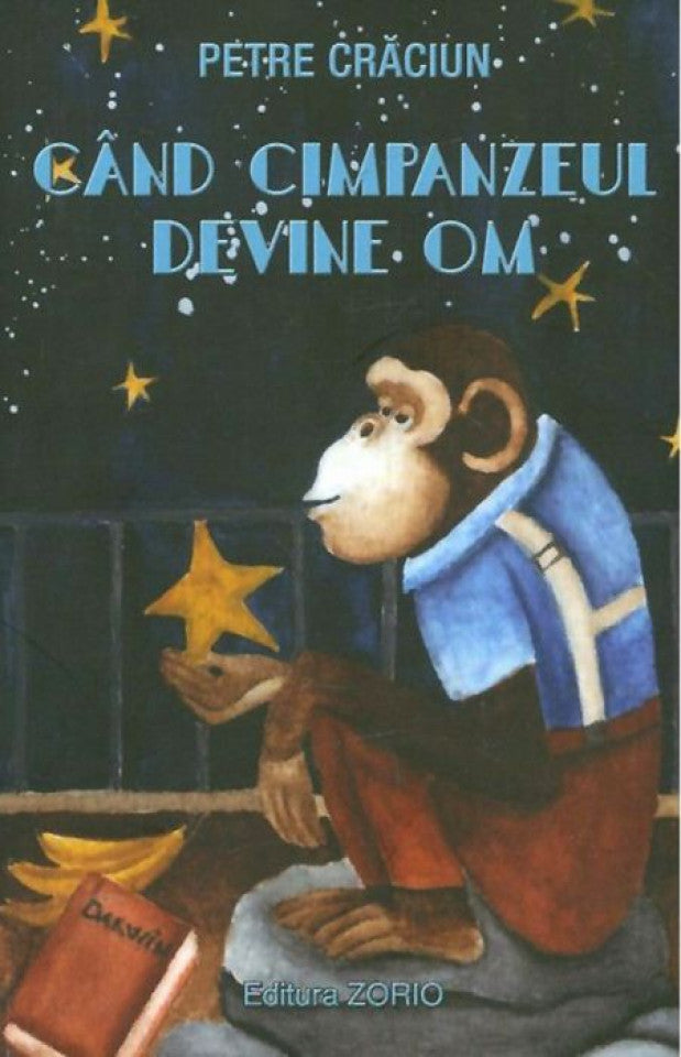 ”Când cimpanzeul devine om este o carte despre prejudecăți, manipulare, despre inechitatea dintre specii și transformarea lor. Pare șocant, nu-i așa? Un cimpanzeu din jungla nigeriană, Gozo Pann, ajunge la Grădina zoologică din Băneasa, după ce este capturat de braconieri. Cu puțin timp înainte fusese capturat și prietenul său, Mank. Deși devine o vedetă a parcului, începe să nu mai suporte captivitatea. La un moment dat, aude de la vizitatori despre teoria evoluționistă a lui Charles Darwin și devine ”fanul” ei. Îl invocă, noapte de noapte, pe savantul britanic, dar acesta nu este pe recepție. În schimb, îl aude Steaua Începutului, care acceptă experimentul de a-l transforma în om, convinsă că făcuse cândva o greșeală. Gozo nimerește într-o Românie plină de prejudecăți, exact în campania electorală.”